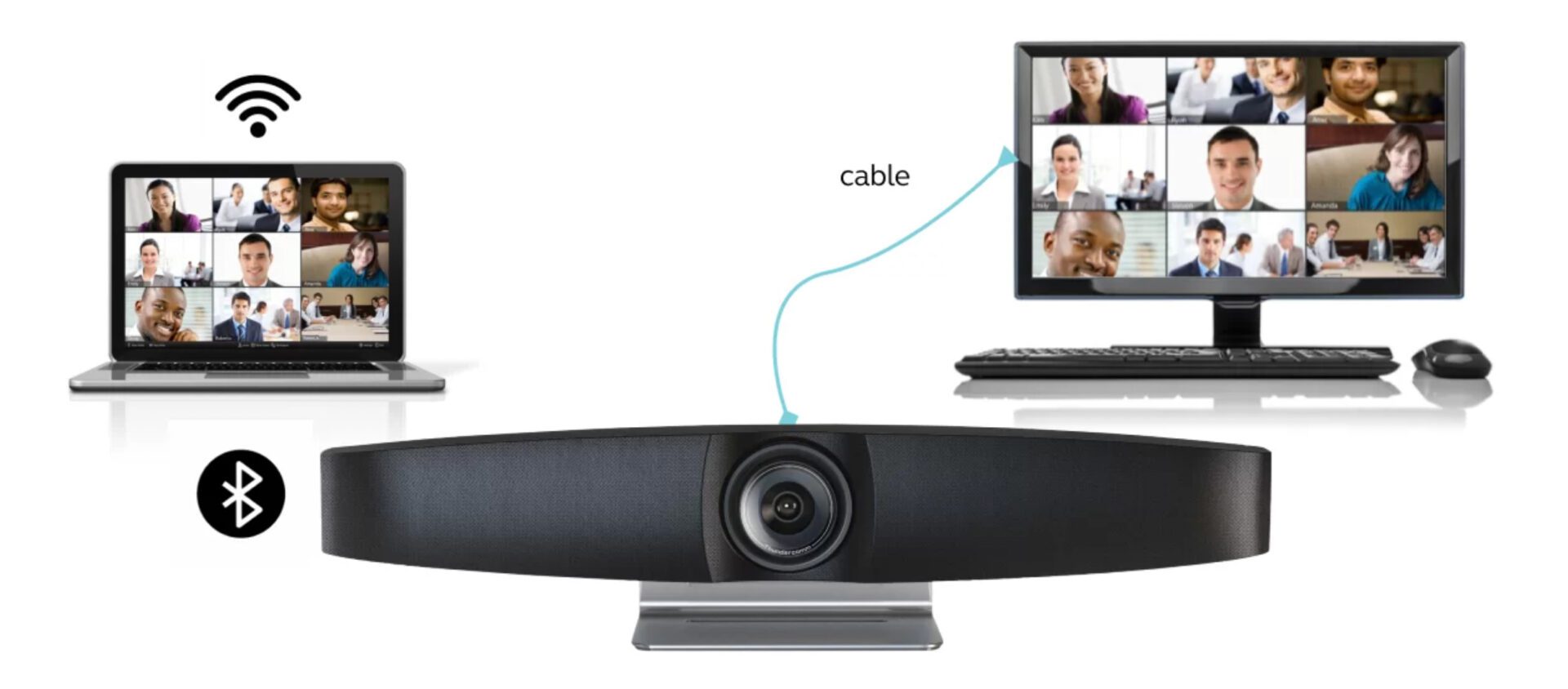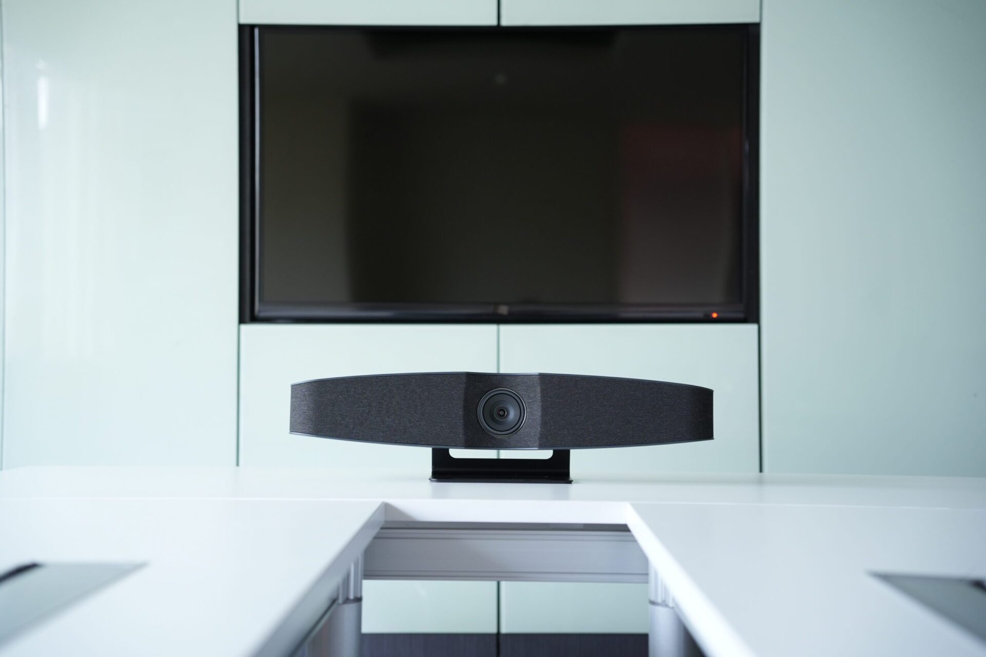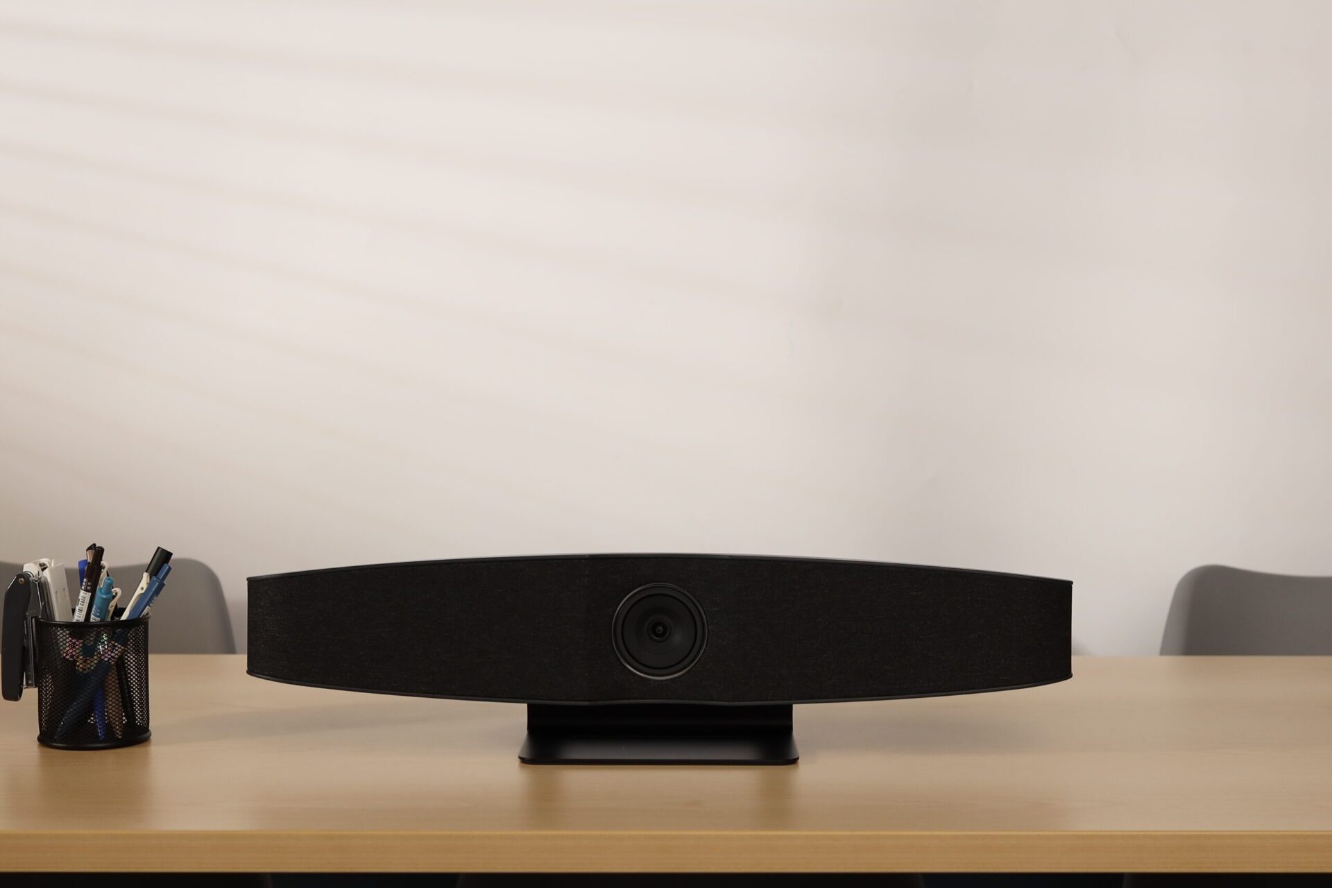 The simple appearance of VB1000 is a new revealed all in one VC soundbar, which combines Hi-Fi speaker, Ultrawide 4K camera, beamforming Microphone, the powerful functions and one cable easy installation characteristic is perfect for business nowadays.