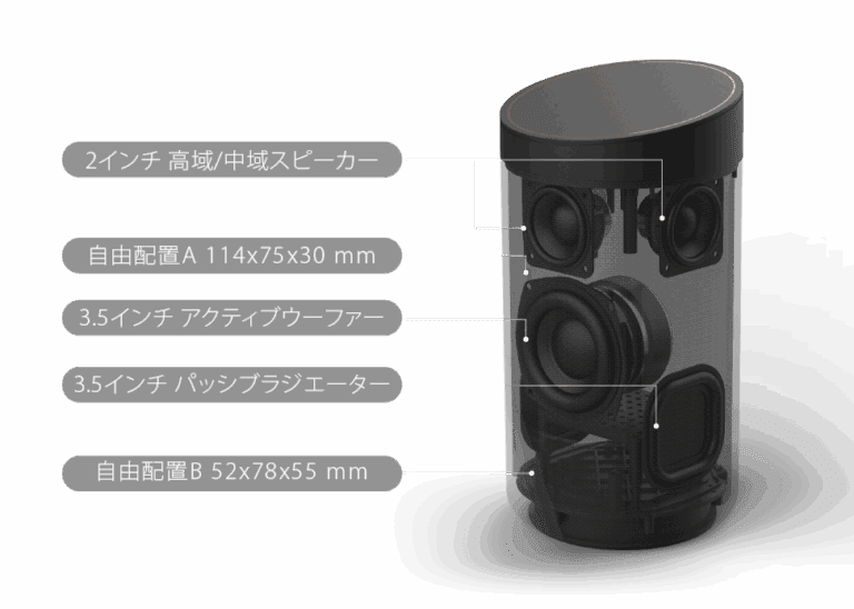 精巧に設計されたスピーカーと空間配置により、2基のミッドレンジ、1基のウーファー、1基のパッシブラジエーターを搭載し、あらゆる音響表現において完璧な再現を実現しています。