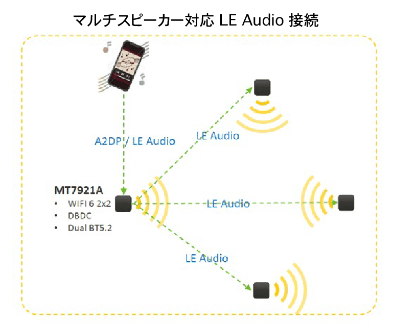 MS5803はAndroid TV用スピーカーシステムとしての利用に加え、BluetoothおよびWi-Fi機能を搭載しており、モバイルデバイスと接続することで、単体のステレオスピーカーとしてストリーミングエンターテインメントにも対応します。