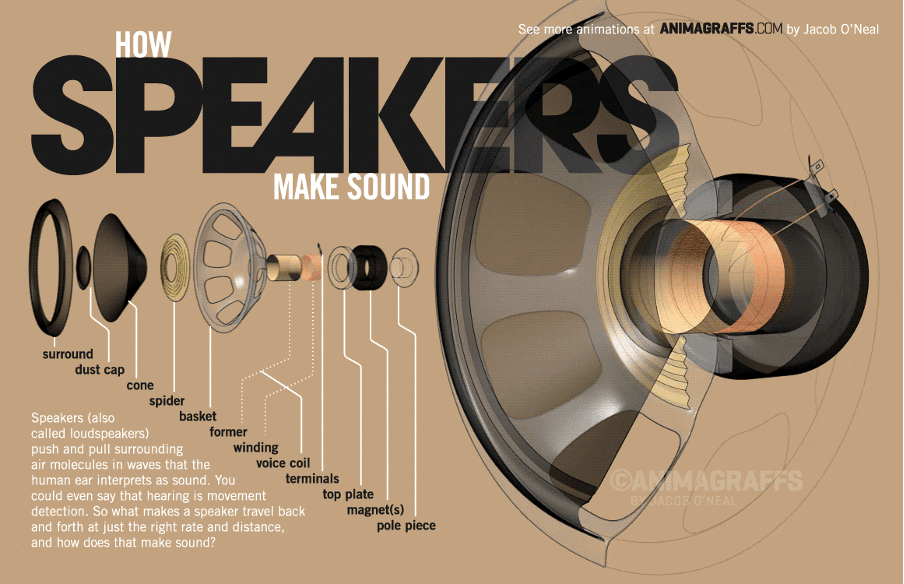 振膜產生之振動會使周圍的空氣產生壓力變化,進而產生聲音波動,以傳達到我們的耳朵。